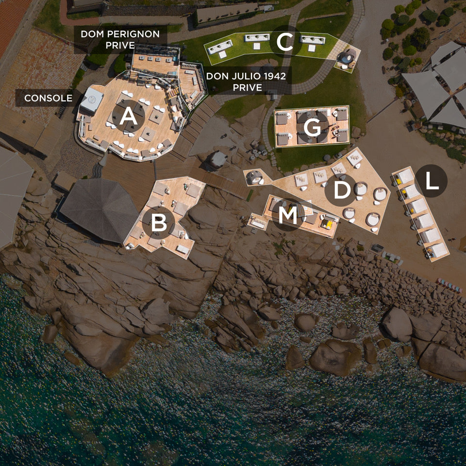 Area M - Sea Lounge (platform facing the sea on the rocks, lounge beds).
